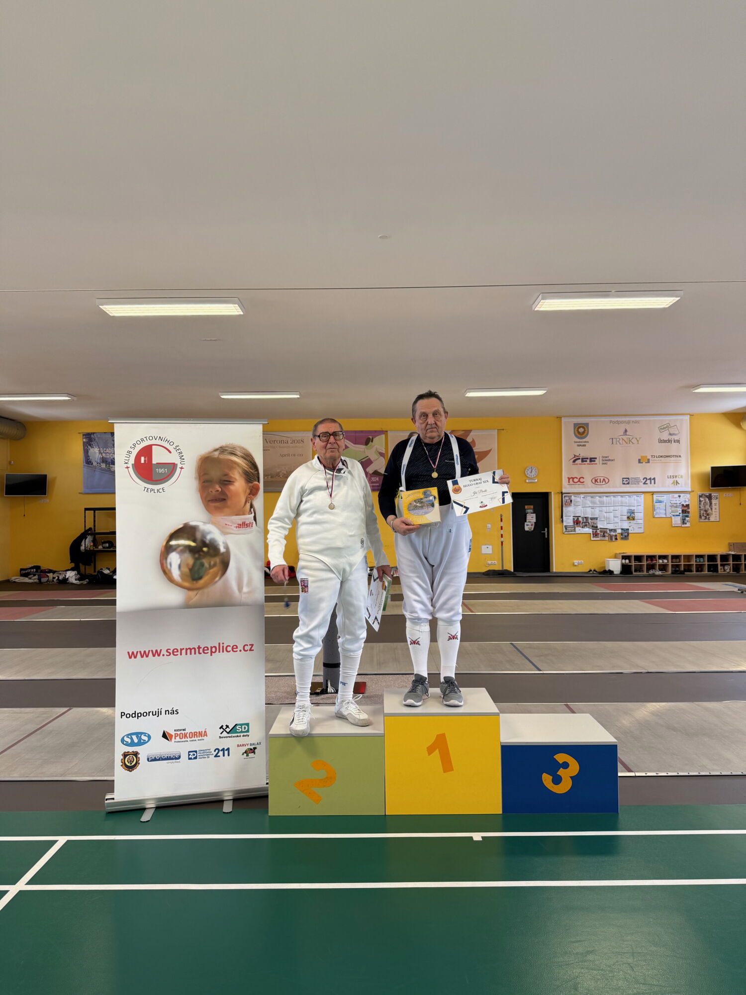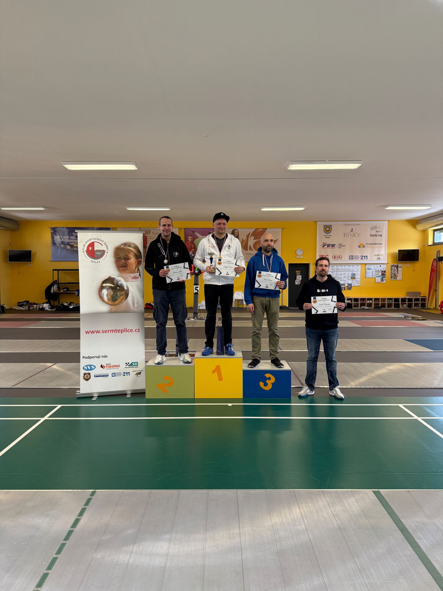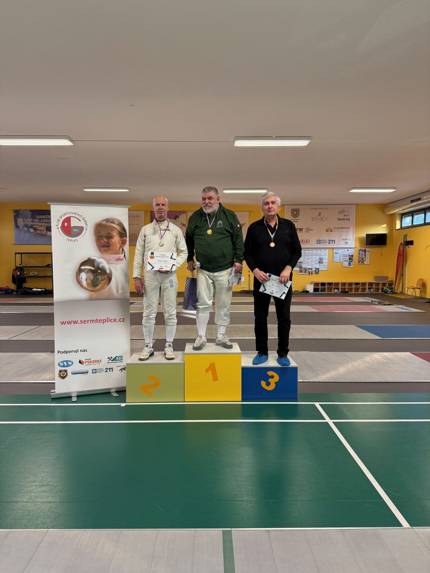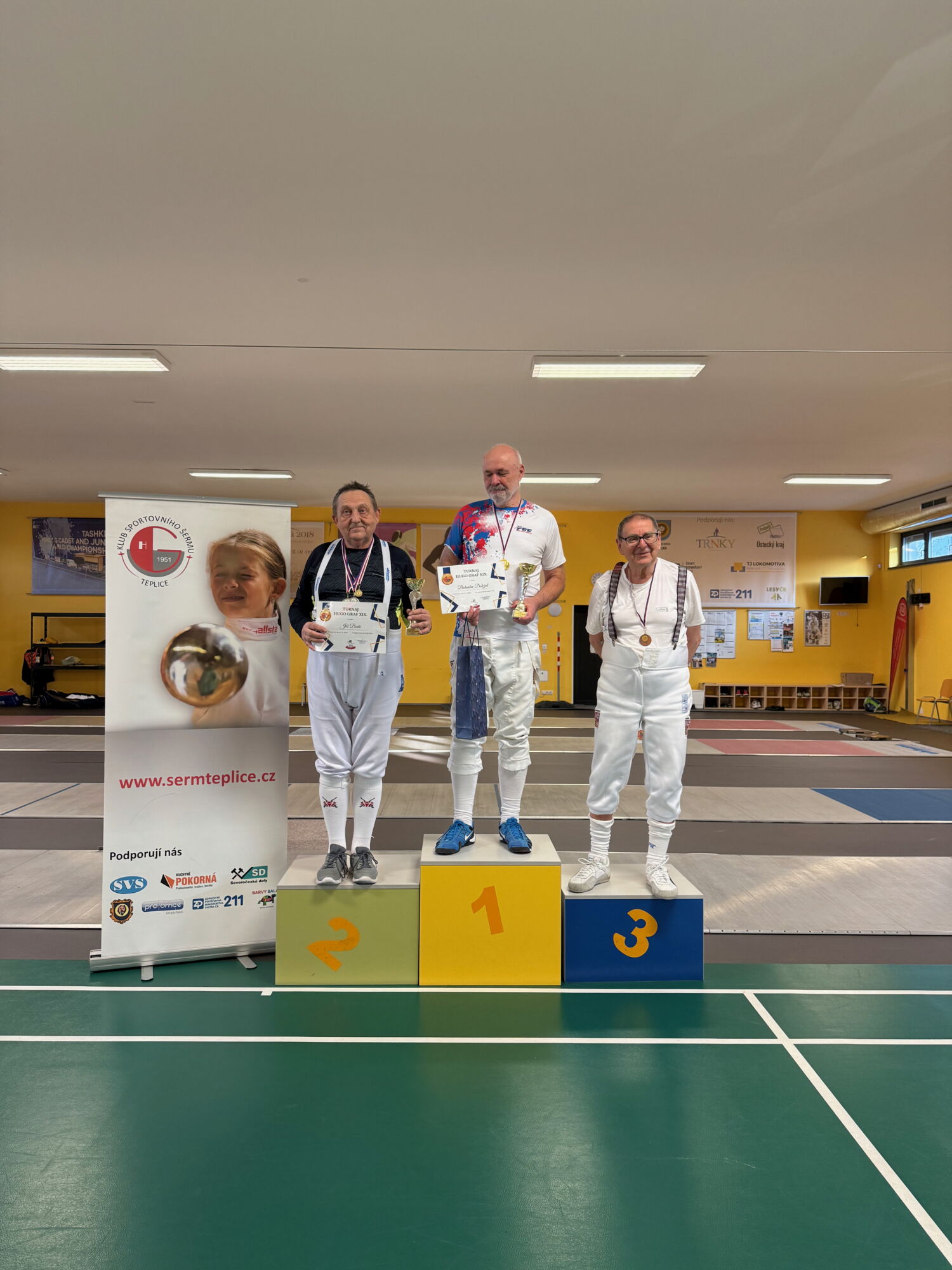 Ano, již podevatenácté jsme v Teplicích pořádali veteránský turnaj na počest zakladatele oddílu sportovního šermu v Teplicích. Oddíl byl založen v roce 1951 a letos je to tedy 75 let od jeho vzniku.