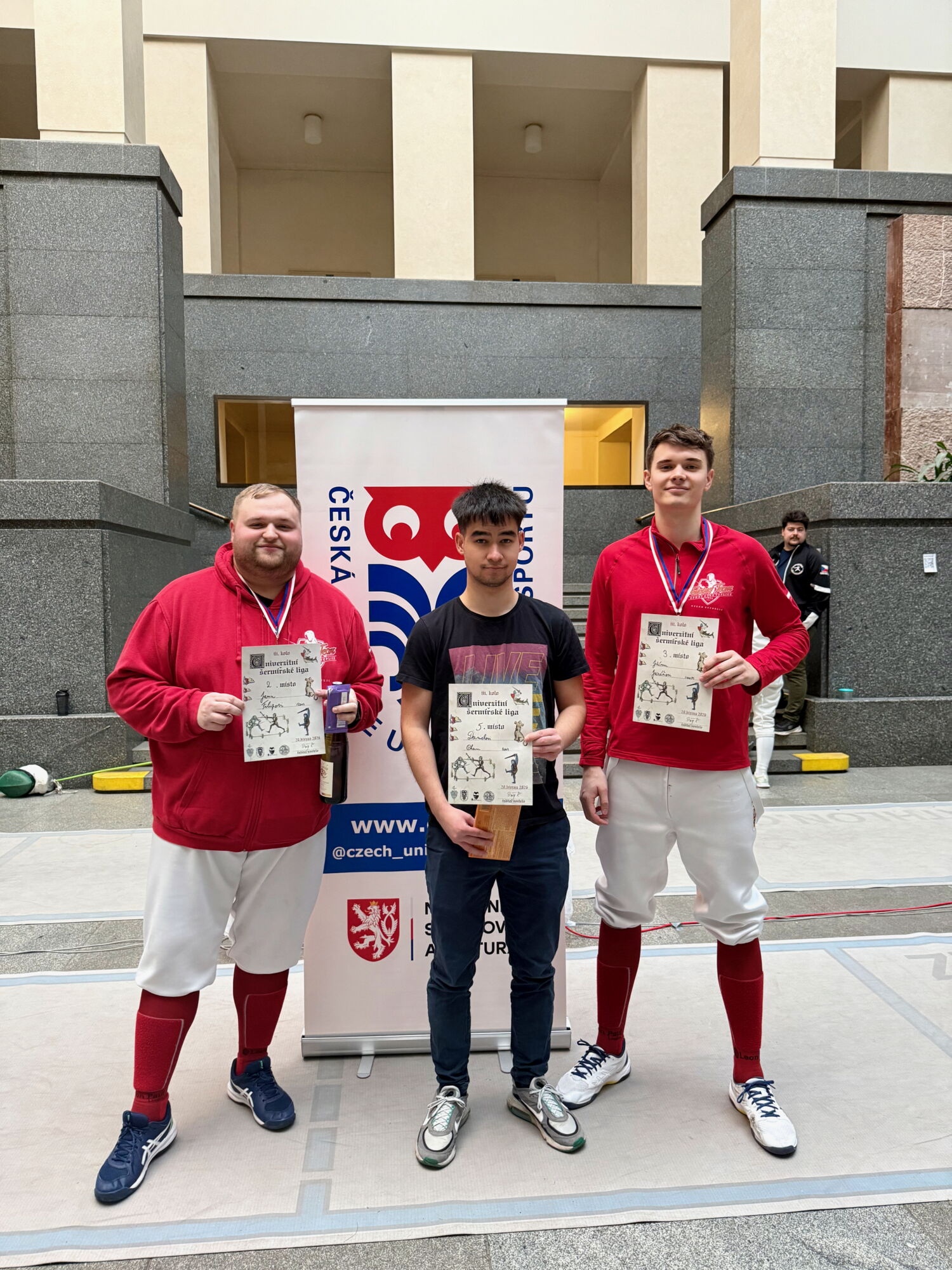 V kategorii mužů šermovali Jan Filip, Daniel Pham a Jiří Juráň. Po velmi úspěšných skupinách, vždy pouze s jednou prohrou, se kluci seřadili do eliminací a prošli až do finálové osmičky. Do první čtyřky se probojovali Jirka a Honza. Do finále postoupil Honza Filip a soupeřem mu byl Martin Novák z Bělé p. B., respektive z Technické univerzity Liberec.