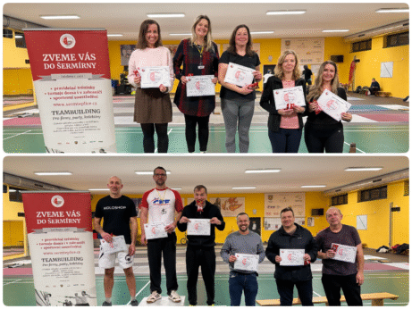A pak už se šlo na věc! Dvanáct odvážných účastníků jsme rozdělili do dvou skupin, které se postupně utkaly v přátelském turnaji. Všichni si tak vyzkoušeli šermování „na ostro“ a nechybělo ani vyhlášení výsledků.